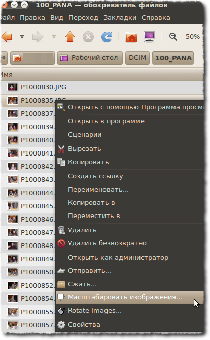 Теперь в контекстном меню для изображений появились новые пункты: масштабировать (resize) и повернуть (rotate). См. картинки: