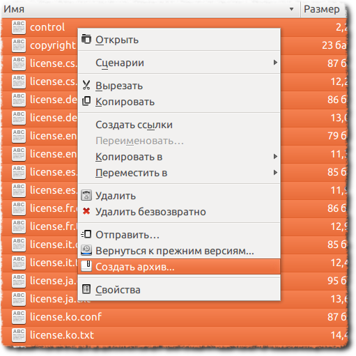Делаем «Извлечь сюда» — разворачиваем control.tar.gz (правой кнопкой мыши в наутилусе, см. картинку ниже):